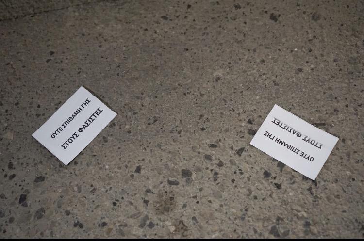 Το Σάββατο λοιπόν η υπόσχεση αυτή πραγματοποιήθηκε και ο φασίστας της μεσολογγίου 2 κρυβόταν στο διαμέρισμα του όταν μας άκουσε να “αφιερώνουμε” συνθήματα σε αυτόν και στους ομοίους του. Η πορεία ξεκίνησε από την παραλιακή του Κούμ Καπί και έκανε ένα μικρό δρομολόγιο περνώντας μέσα από τα στενά δρομάκια της γειτονιάς. Είχε έντονο παλμό και δεν σταμάτησαν στιγμή να ακούγονται αντιφασιστικά συνθήματα. Το σώμα της πορείας έκανε αρκετές στάσεις, κατά τις οποίες διαβάστηκε με ντουντούκα και θυροκολλήθηκε το κείμενο της συνέλευσης, που εξηγούσε τον λόγο που βρισκόμασταν εκεί.